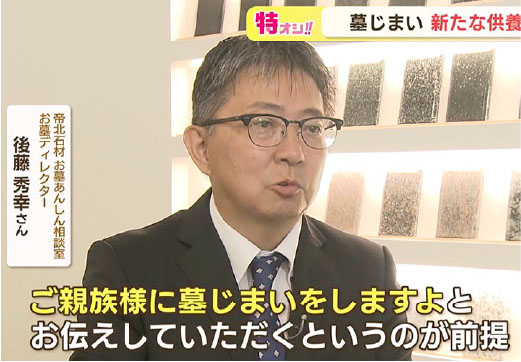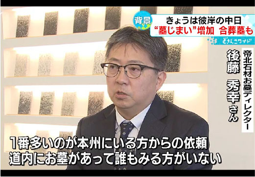 昨年9月に起きた胆振東部地震から1年、倒壊したお墓を撤去、ご遺骨を移転する「墓じまい」が増えていることについて取材いただきました。