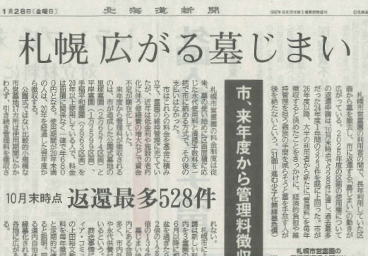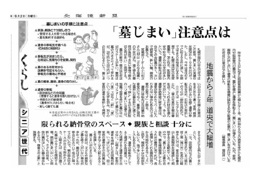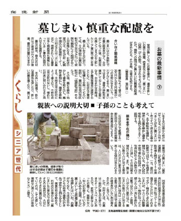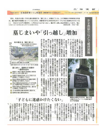 「広がる墓じまい 道内改葬10年で3倍」の記事にあたり、北海道新聞社より取材を受けました。