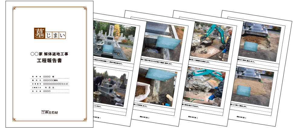 完成報告書は写真付きで工事の流れをまとめたものです。